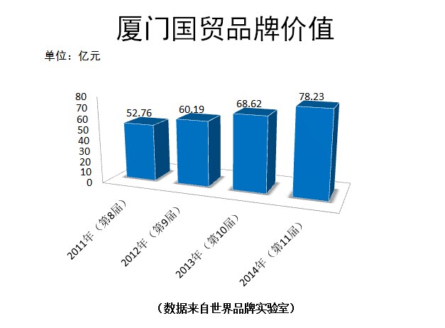 6月25日,世界品牌實(shí)驗室在北京召開(kāi)世界品牌大會(huì ),發(fā)布2014(第十一屆)《中國500最具價(jià)值品牌》排行榜。在這份基于財務(wù)分析、消費者行為分析和品牌強度分析而獲得的中國品牌國家隊陣容中,廈門(mén)國貿集團股份有限公司第4次上榜,名列年度榜單第284位,品牌價(jià)值78.23億元,較上年度增加了9.61億元。