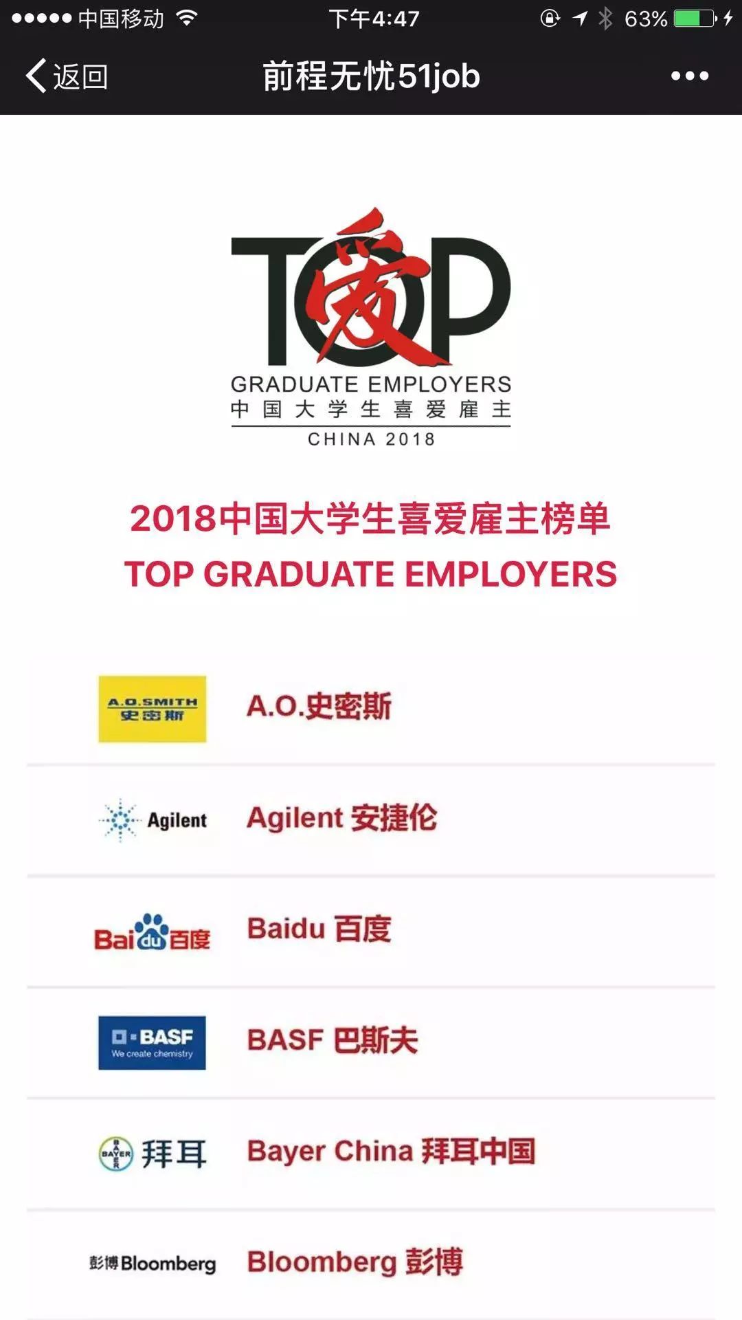 “中國大學(xué)生喜愛(ài)雇主”(TopGraduateEmployers)評選由中國領(lǐng)先的人力資源服務(wù)商前程無(wú)憂(yōu)(51job.com)和擁有數百萬(wàn)大學(xué)生用戶(hù)的應屆生求職網(wǎng)(yingjiesheng.com)聯(lián)合發(fā)起,經(jīng)過(guò)評選,全國70多家企業(yè)上榜,福建3家企業(yè)入圍。