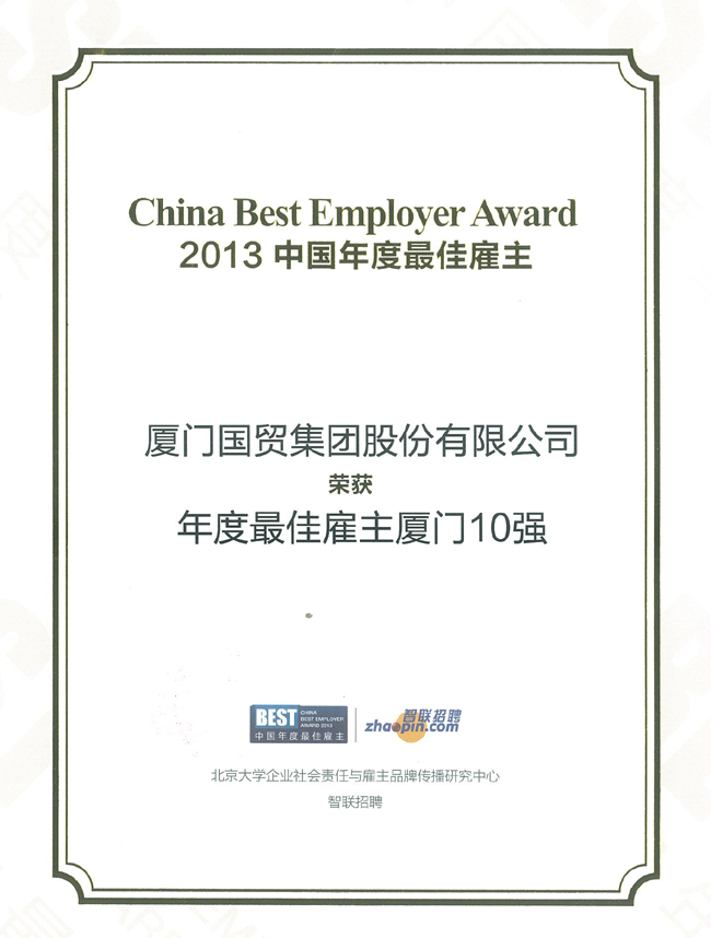廈門(mén)國貿榮獲年度最佳雇主廈門(mén)10強