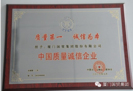 近日,中國出入境檢驗檢疫協(xié)會(huì )公布2013中國質(zhì)量誠信企業(yè)名單,廈門(mén)國貿第二次蟬聯(lián)此項稱(chēng)號。