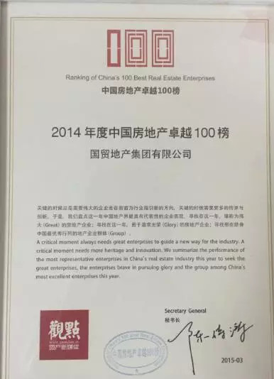 3月26日,2015觀(guān)點(diǎn)年度論壇盛大發(fā)布2014年度中國房地產(chǎn)卓越100榜,國貿地產(chǎn)集團成功登榜!