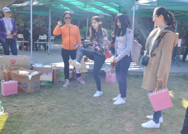 在地產(chǎn)公司美女領(lǐng)跳熱身操后,健步走,猜燈謎,踢毽子,踩氣球,套禮品、公仔人偶……歡聲笑語(yǔ)中,國貿人相互問(wèn)候,攜手同行。2016,一路有你,2017國貿人一起前行!