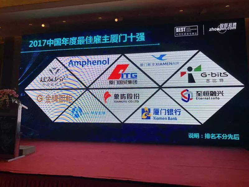 1月24日,“數字驅動(dòng),智造未來(lái)”2017中國年度最佳雇主頒獎盛典在廈門(mén)舉行?;顒?dòng)當天揭曉了2017年廈門(mén)年度最佳雇主10強,廈門(mén)國貿以絕對優(yōu)勢,再次入選廈門(mén)年度最佳雇主10強榜單。