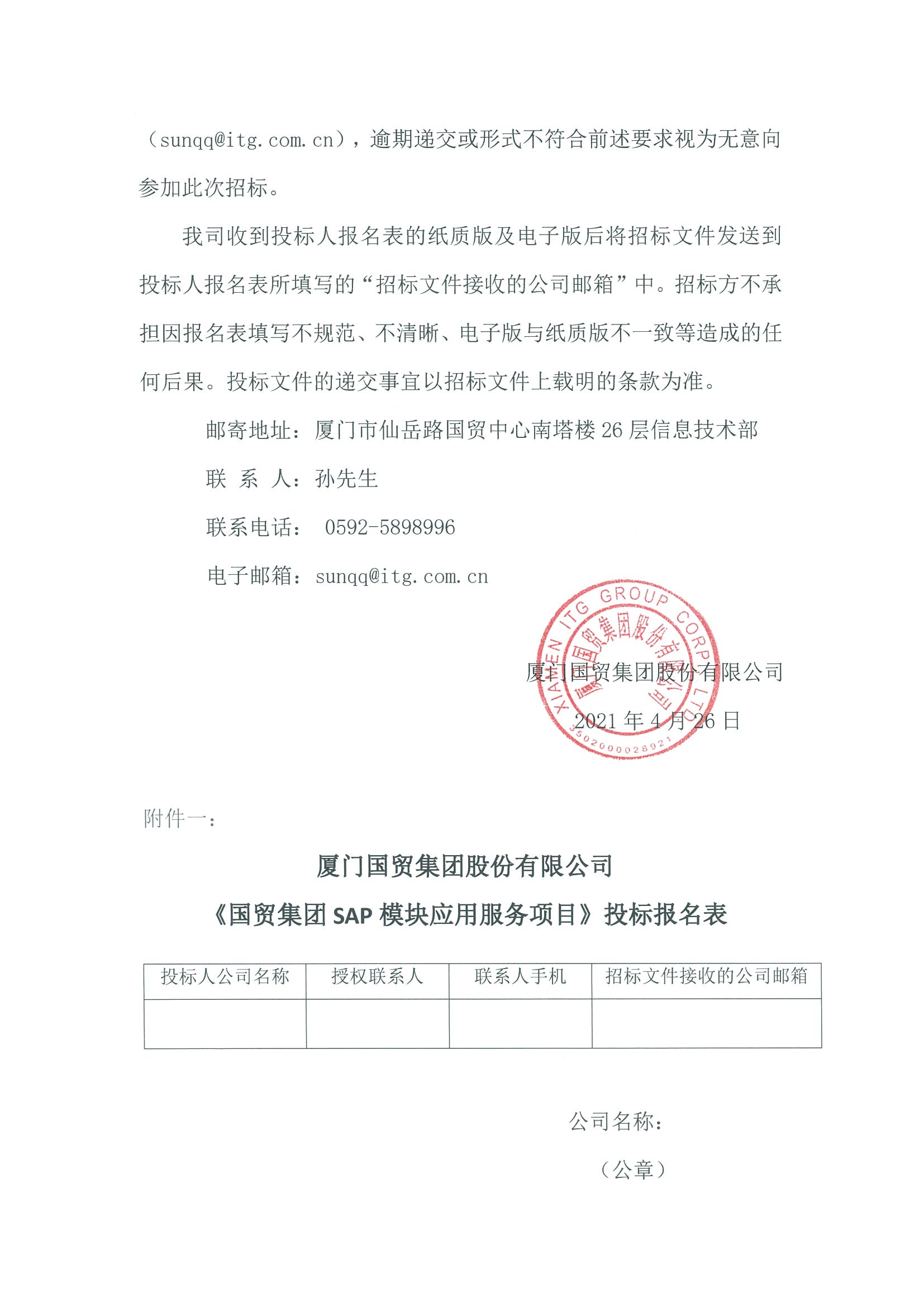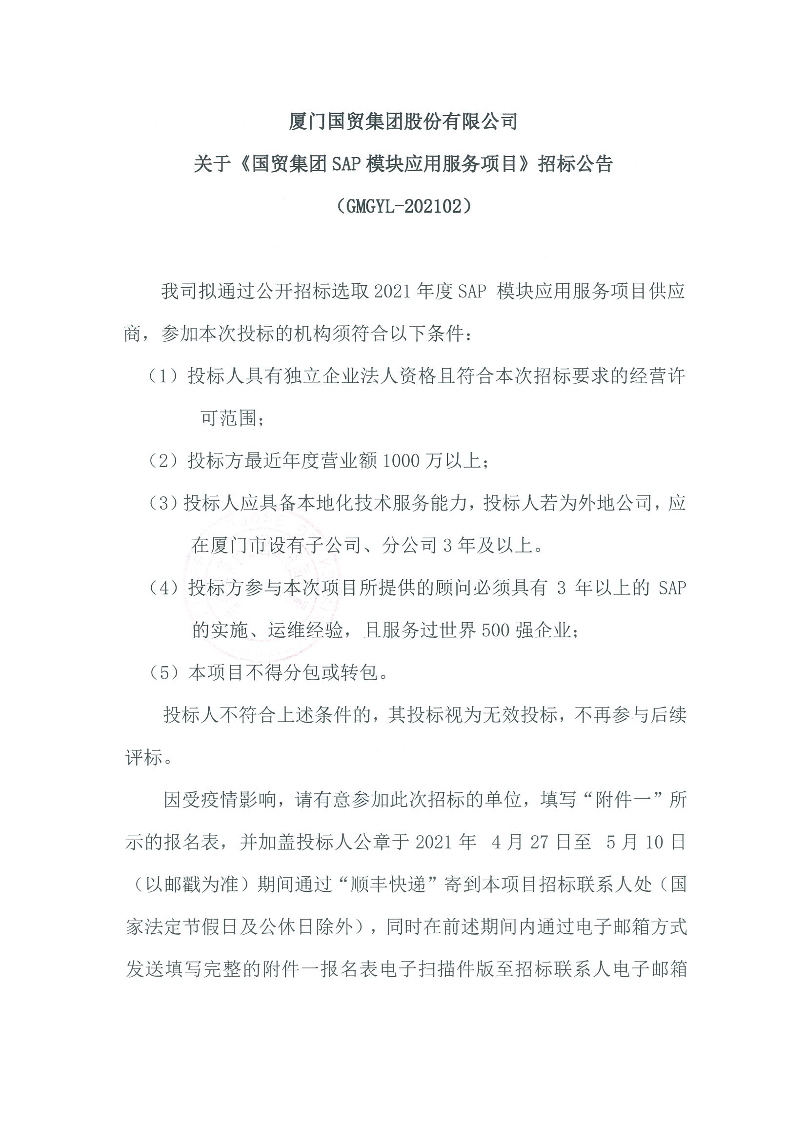 關(guān)于《國貿集團SAP模塊應用服務(wù)項目》招標公告
