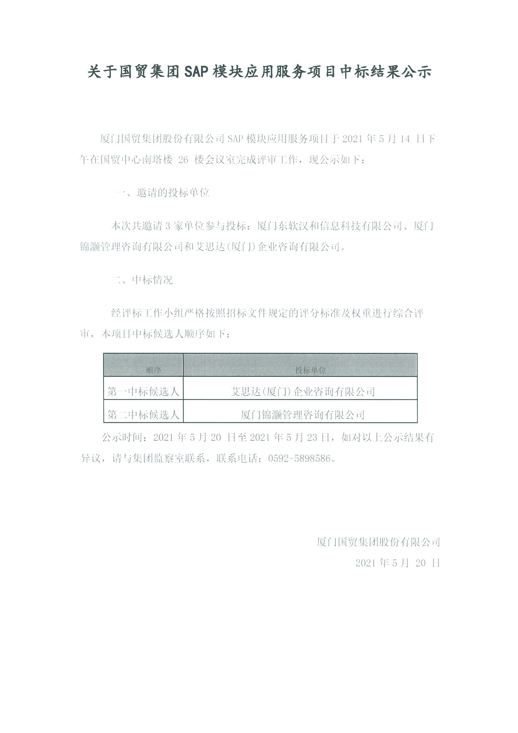 關(guān)于國貿集團SAP模塊應用服務(wù)項目中標結果公示