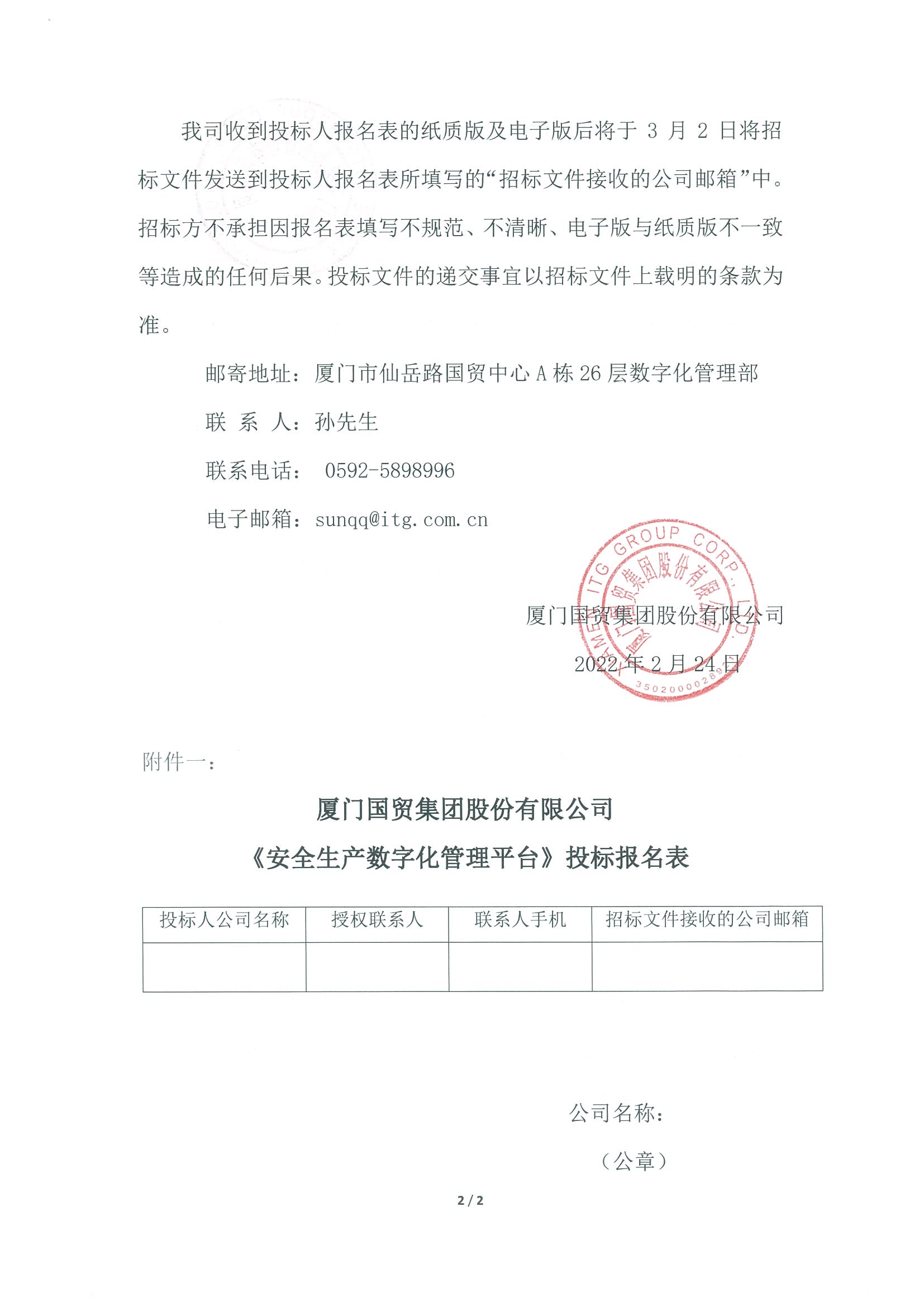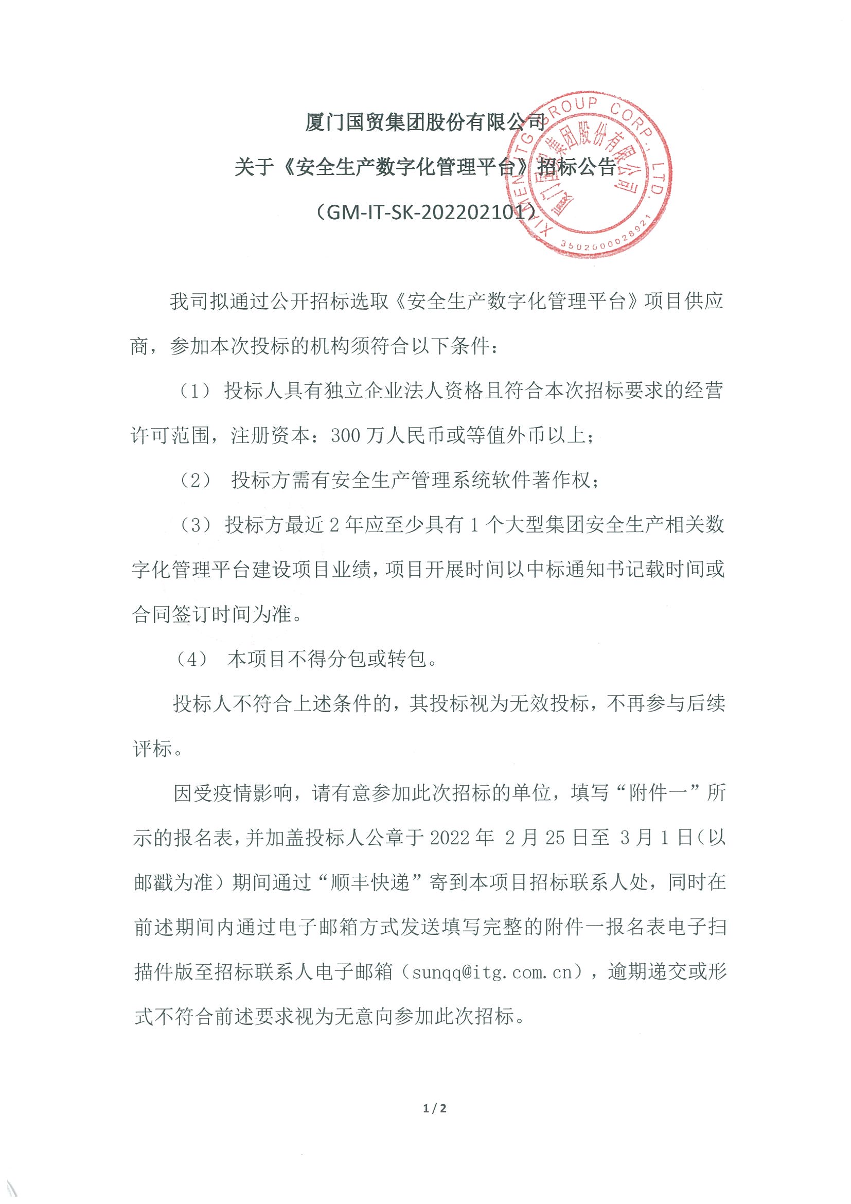 國貿股份《安全生產(chǎn)數字化管理平臺》項目采購招標公告