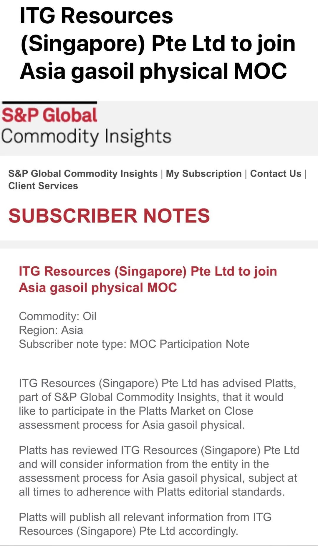 國貿股份旗下ITG Resources獲得普氏柴油亞洲市場(chǎng)窗口交易資格,這是國貿股份繼2022年6月 ITG Amoy 輪取得燃料油普氏市場(chǎng)窗口交易資格后,再度參與全球油品市場(chǎng)定價(jià)。