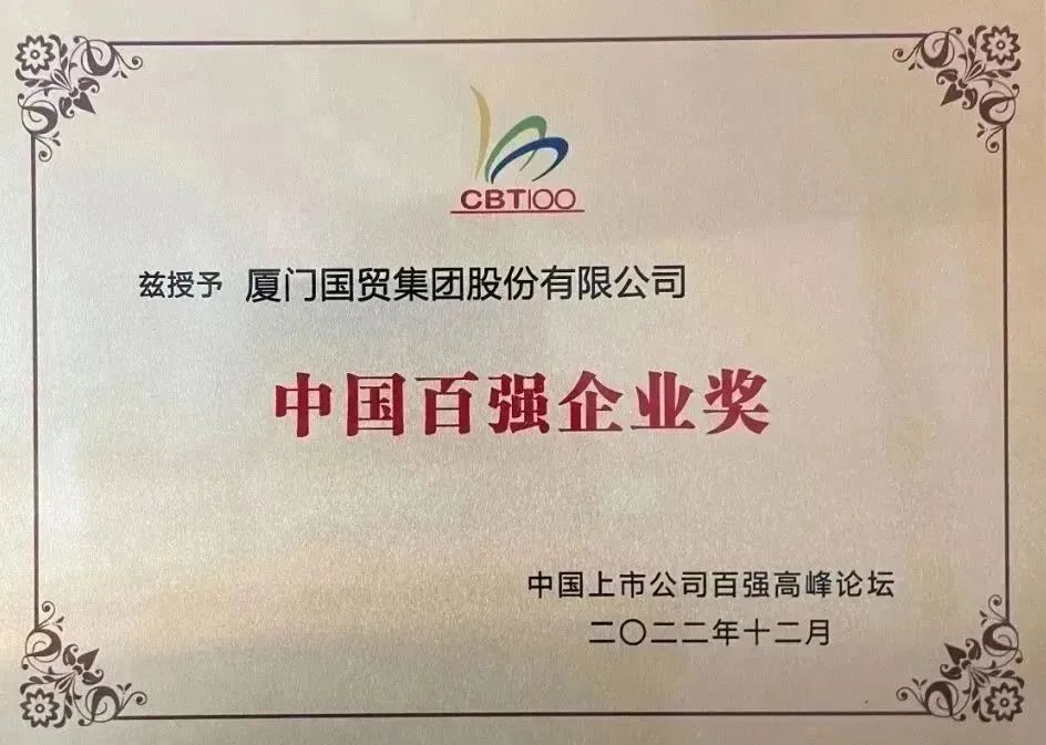 廈門(mén)國貿集團股份有限公司(股票代碼:600755.SH)榮獲“2022年中國上市公司百強企業(yè)獎”。