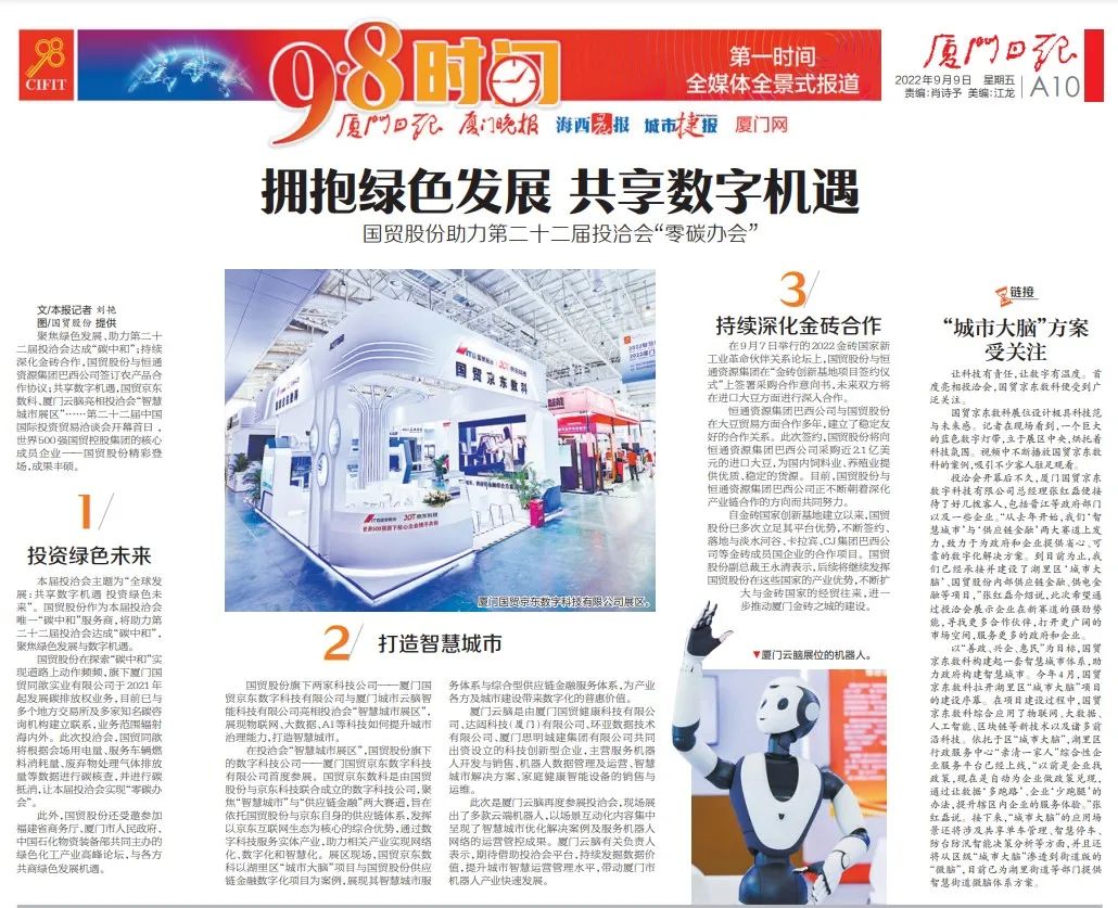 廈門(mén)日報 | 國貿股份助力第二十二屆投洽會(huì )“零碳辦會(huì )”。