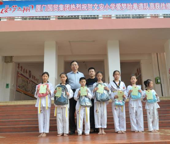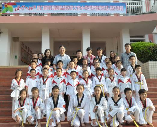 文安小學(xué)愛(ài)夢(mèng)跆拳道隊成立于今年年初,由廈門(mén)國貿集團贊助支持,并取名為“愛(ài)夢(mèng)