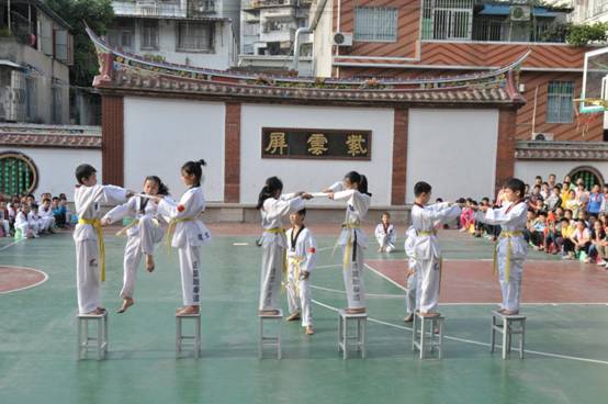 跆拳道隊”,與國貿集團“愛(ài)與夢(mèng)飛翔”社會(huì )公益活動(dòng)的主題相契合。雖然成立時(shí)間不長(cháng),但跆拳道隊的小小隊員們刻苦訓練,取得了優(yōu)異的成績(jì):愛(ài)夢(mèng)跆拳道隊在“2012年萬(wàn)杰隆杯廈門(mén)國際武術(shù)大賽”比賽中表現突出,多人斬獲前三名;在“2012年思明區中小學(xué)生跆拳道比賽”中更榮獲第一、二、三、五等獎。
