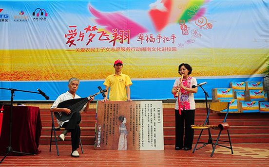 2011年9月,廈門(mén)國貿集團聯(lián)手廈門(mén)廣電集團閩南之聲欄目與文安小學(xué),結合助學(xué)行動(dòng),在文安小學(xué)舉辦了一場(chǎng)“愛(ài)與夢(mèng)飛翔 幸福手拉手——關(guān)愛(ài)農民工子女志愿服務(wù)行動(dòng)閩南文化進(jìn)校園活動(dòng)”,將閩南傳統文化南音、傀儡戲帶入文安小學(xué)。兩位資深老師妙語(yǔ)連珠的講課,不但調動(dòng)全場(chǎng)孩子的熱情,同時(shí)讓學(xué)生們切身感受到閩南文化博大精深的韻味。